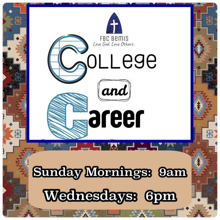 Join our College & Career Group on Sundays at 9am and Wednesdays at 6pm.